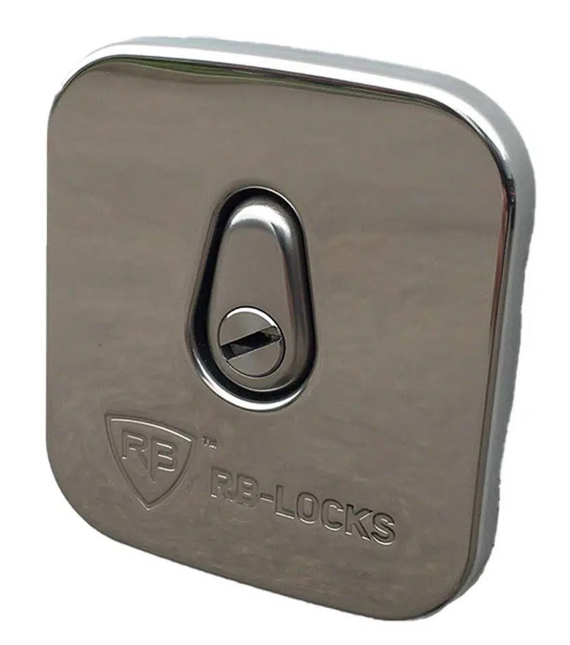 RB-LOCKS Le système de tringlerie est inviolable. Composé de cylindres de haute sécurité avec clés brevetées incopiables et carte de propriété, la reproduction est uniquement possible par les centres agréés RB-LOCKS. La plaque extérieure, le protecteur de cylindre et toute la tringlerie sont en INOX, plus de corrosion ni d’éclats de peinture. Différentes configurations : Serrures 3 points portes arrières + 1 point porte latérale Serrure 3 points portes arrières uniquement Serrure 1 point porte latérale uniquement Plaques extérieures optionnelles : Noir (sur demande) Blanc (sur demande)
