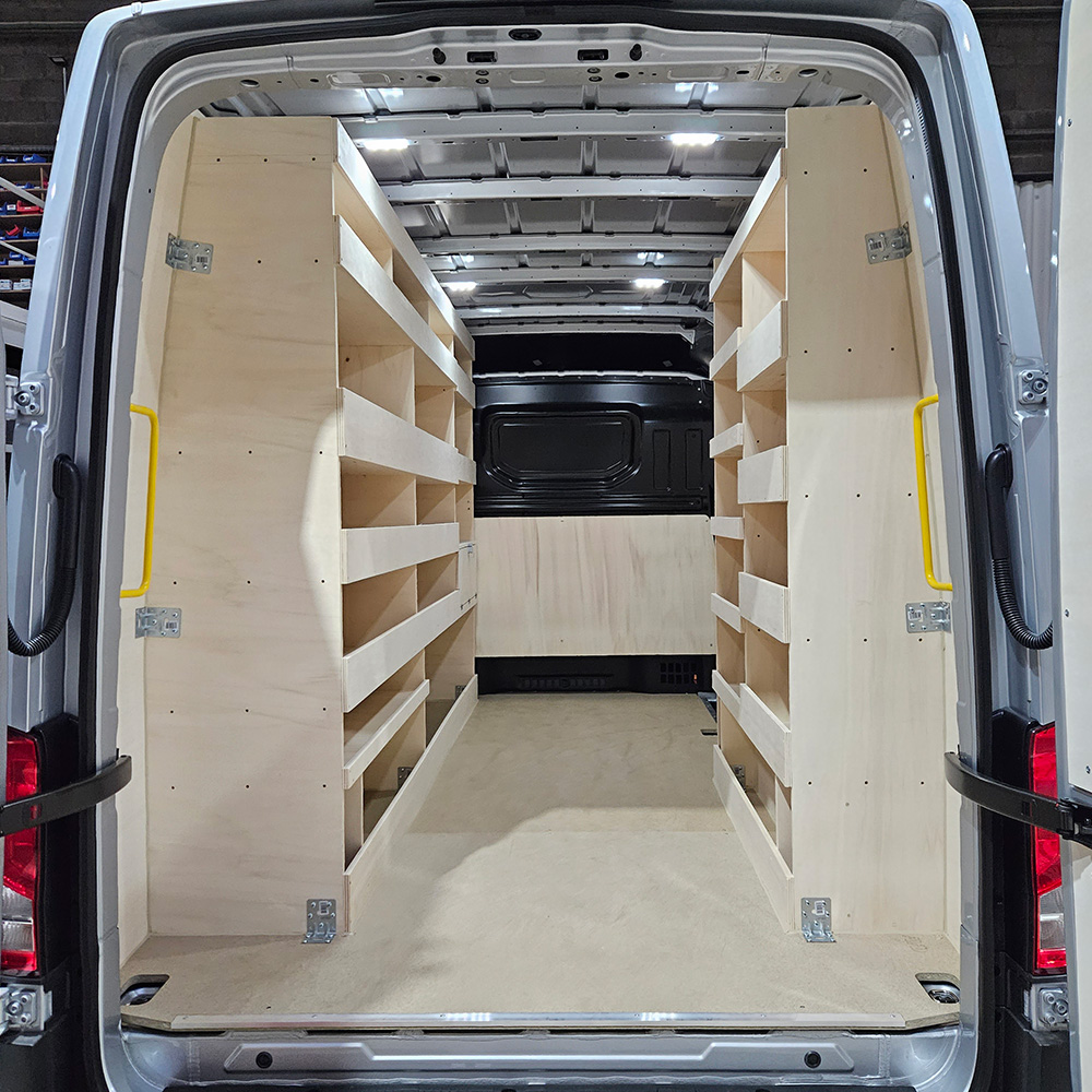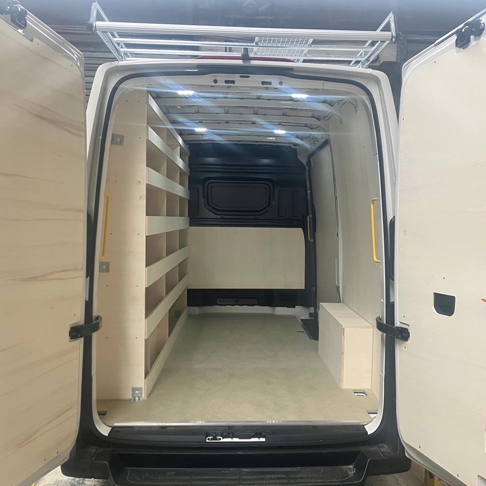 Le Volkswagen Crafter est conçu pour les professionnels qui ont besoin de capacité, de robustesse et d’un agencement sur mesure. AVD vous propose une configuration complète : plancher renforcé, habillage intégral, modules métiers, tiroirs grands formats, supports de charges longues et étagères hautes résistances.
