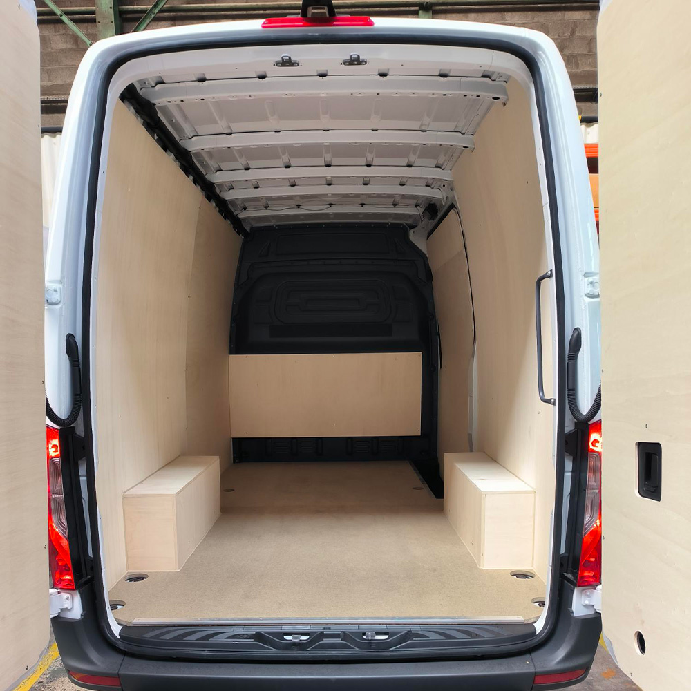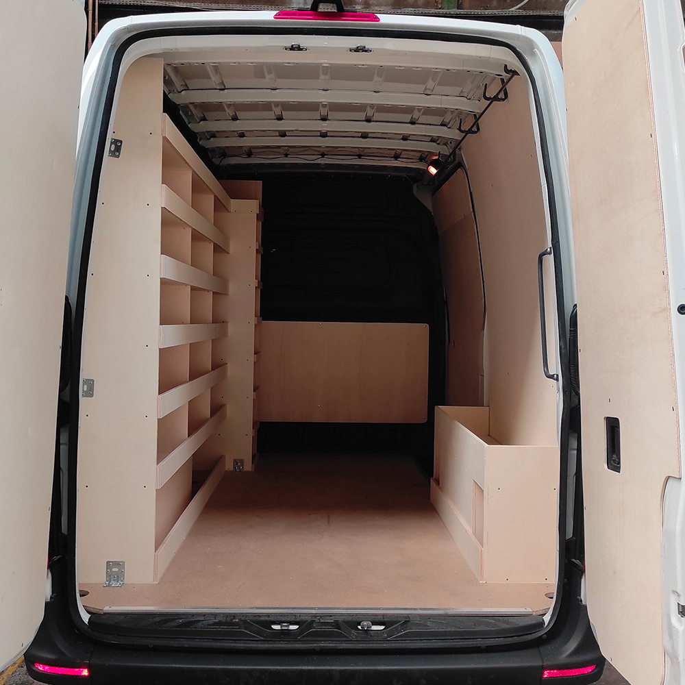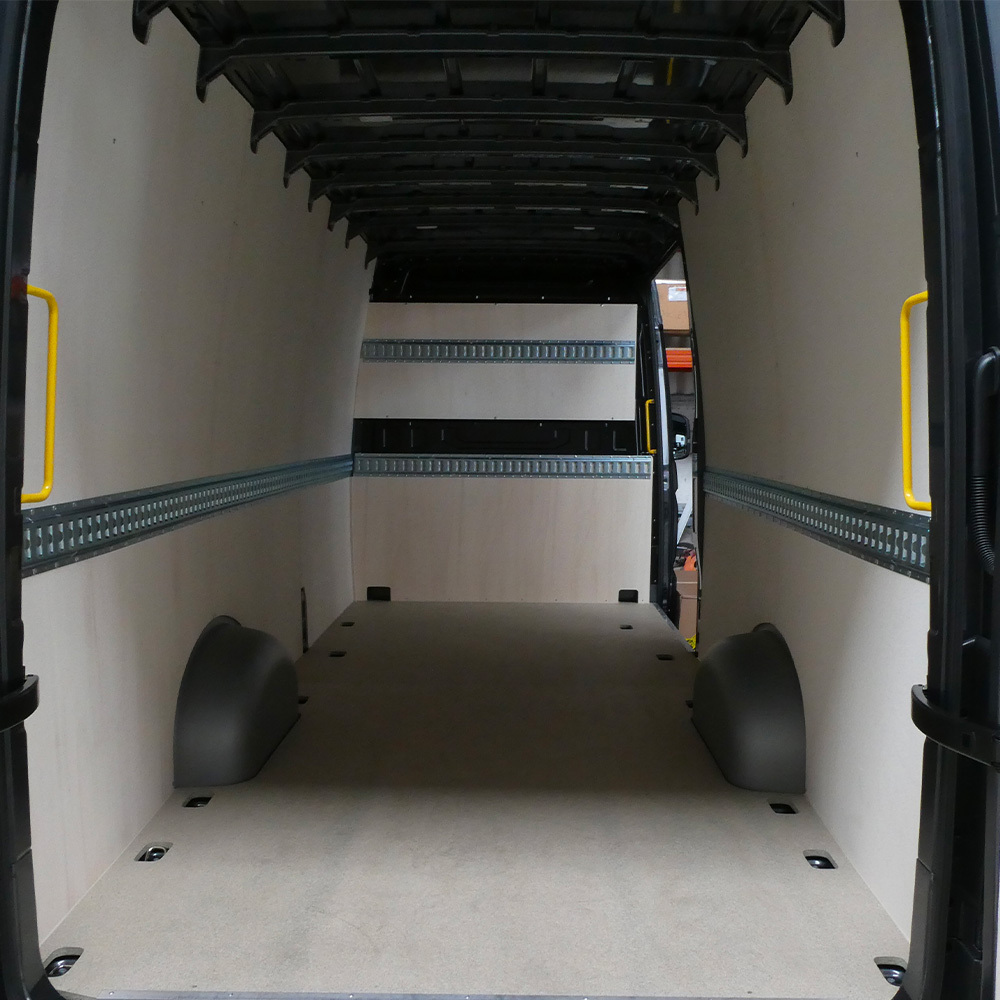 Le Mercedes-Benz Sprinter est un utilitaire haut de gamme, taillé pour les missions exigeantes et les grands volumes de chargement. AVD valorise cet espace avec des aménagements sur mesure : plancher antidérapant renforcé, habillage en bois filmé ou polypropylène, étagères robustes, tiroirs profonds et modules professionnels adaptés à votre activité.