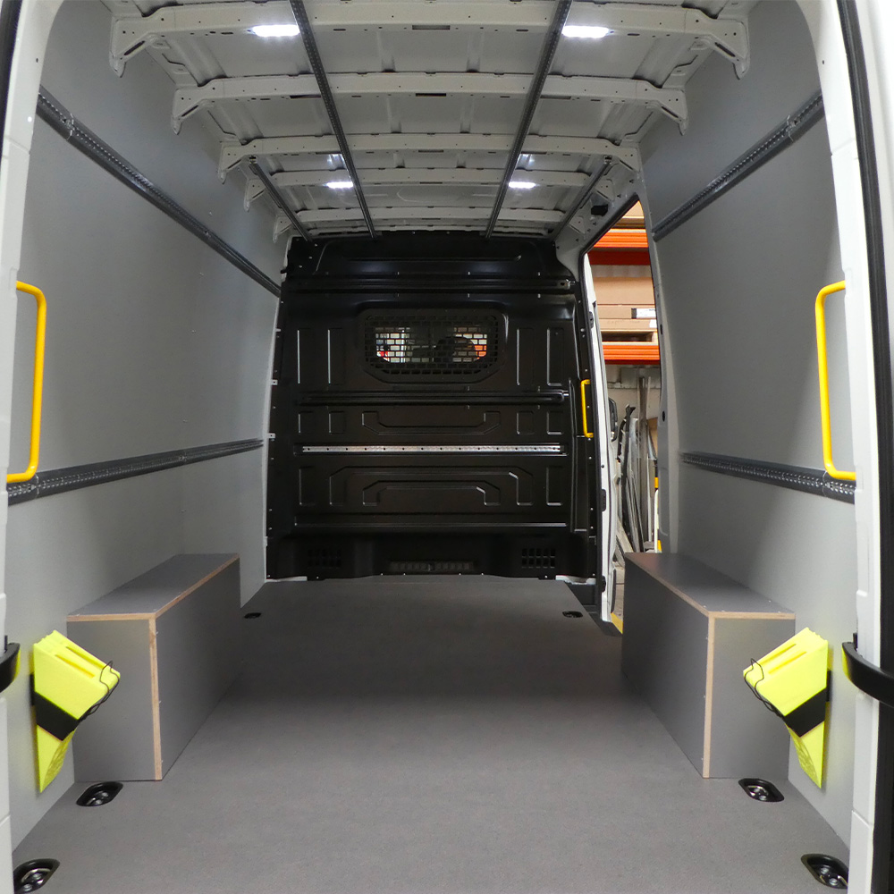 Le MAN TGE est un utilitaire robuste, conçu pour supporter des charges importantes tout en offrant un espace de travail généreux. Chez AVD, nous l’équipons d’aménagements intérieurs sur mesure : plancher antidérapant haute résistance, habillage en bois filmé ou en polypropylène, modules de rangement adaptés à votre activité, rails d’arrimage, tiroirs renforcés et mobilier technique.